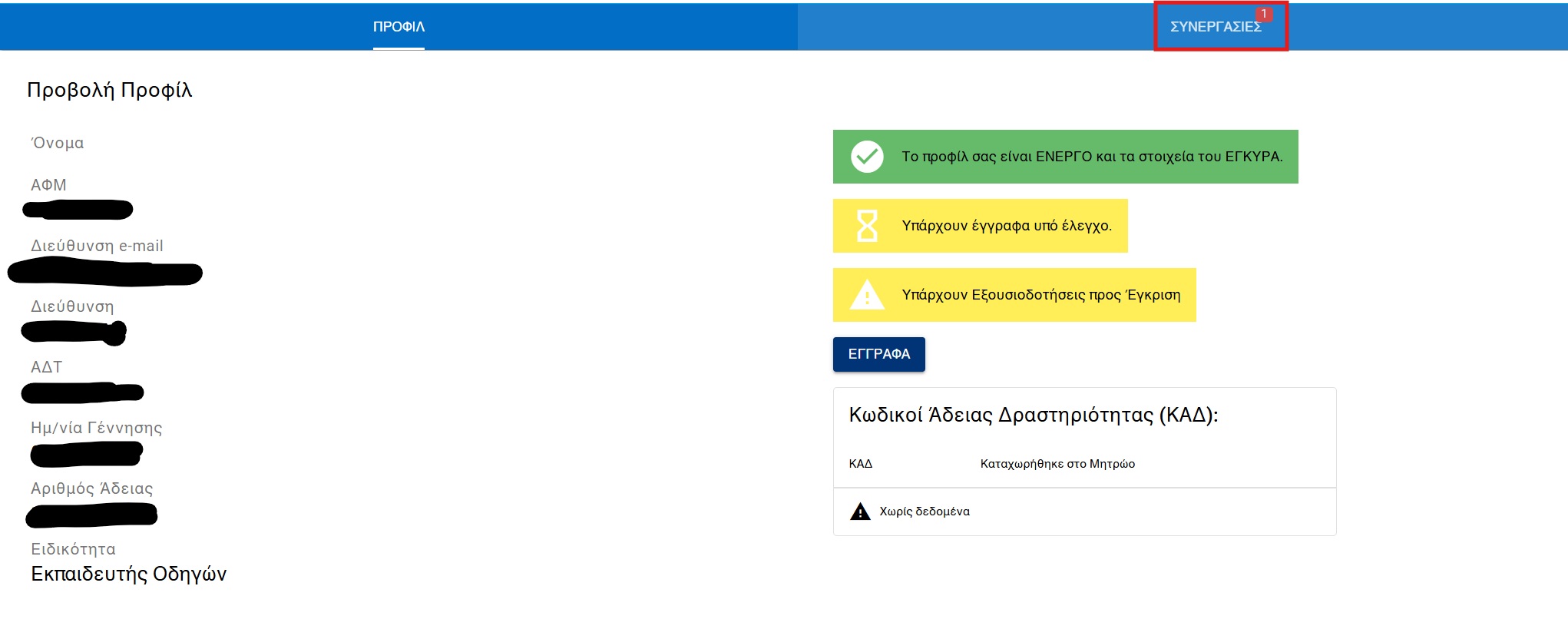 Για να μπορέσετε να εγκρίνετε/απορρίψετε συνεργασίες με σχολές, θα πρέπει πρώτα να έχει ολοκληρωθεί η διαδικασία εγγραφής στο μητρώο